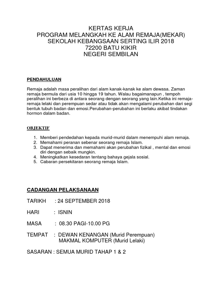 Kertas kerja sentuhan rohani kem jati diri belia gemilang tqhm satu dua tiga hari dua malam cadangan anjuran program remaja dan belia anjuran agensi kerajaan dan swasta dikendalikan oleh. Format Kertas Kerja Projek. Walaubagimanapun tempoh peralihan ini berbeza di antara seorang dengan seorang murid.